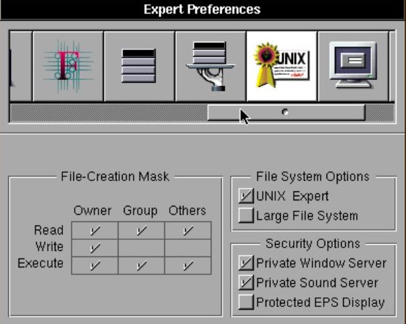 NeXT systems ship with dozens of setuid and setgid binaries — around eighty in a default install — many of which allow normal users to perform administrative actions without sudo (which doesn’t exist on NeXT).