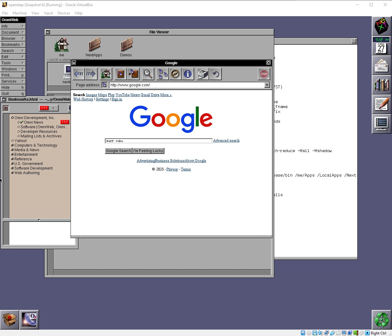 So yes — it’s a time capsule, but also a surprisingly fun little Unix obstacle course. You’ll end up debugging, porting, and re-learning core Unix skills — just without the modern safety nets. Working inside NeXT feels like stepping back into the late-90s: SunOS, Solaris, HP-UX — but cleaner, tighter, and more consistent. And its development environment was nothing short of revolutionary. With Objective-C and Interface Builder, developers could craft powerful, polished apps in record time — long before “rapid application development” became a buzzword.
