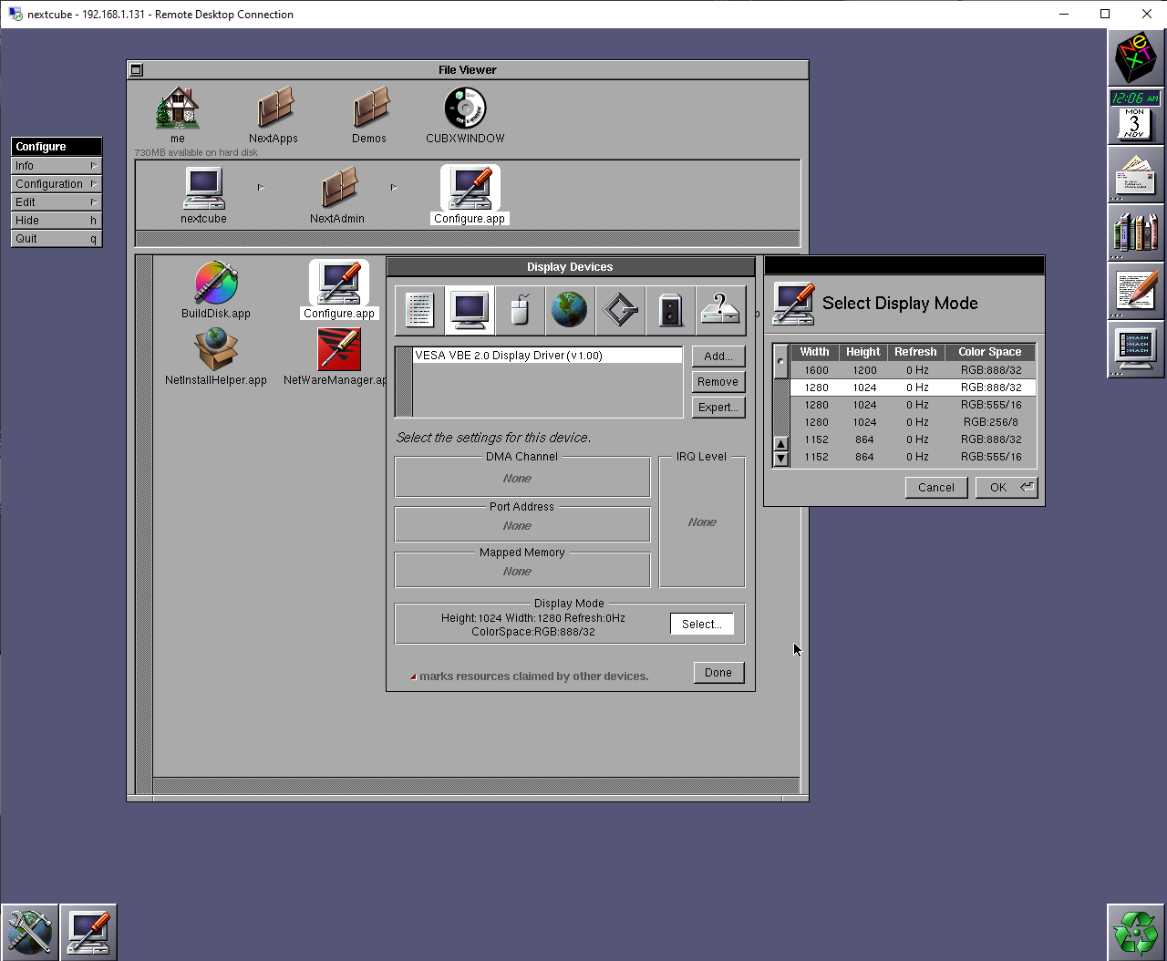 If you’ve followed along, you now have a complete OpenStep 4.2 environment running on modern hardware—networking, color video, and development tools included. It’s a fully functional UNIX system from another era, and yet, it still integrates cleanly into a modern lab network.