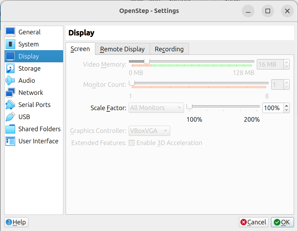 VirtualBox settings