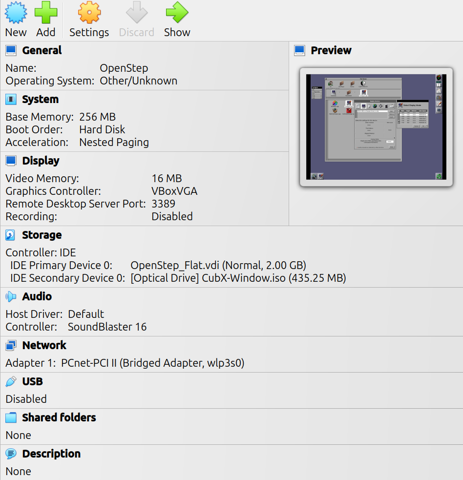 This time, after the usual ritual of false starts and head scratching, I eventually managed to assemble a clean, stable VirtualBox 7 for Linux build of OpenStep 4.2 Patch 4.